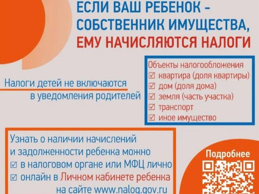 ФНС напоминает вам о своевременной уплате налогов за ваших несовершеннолетних детей.