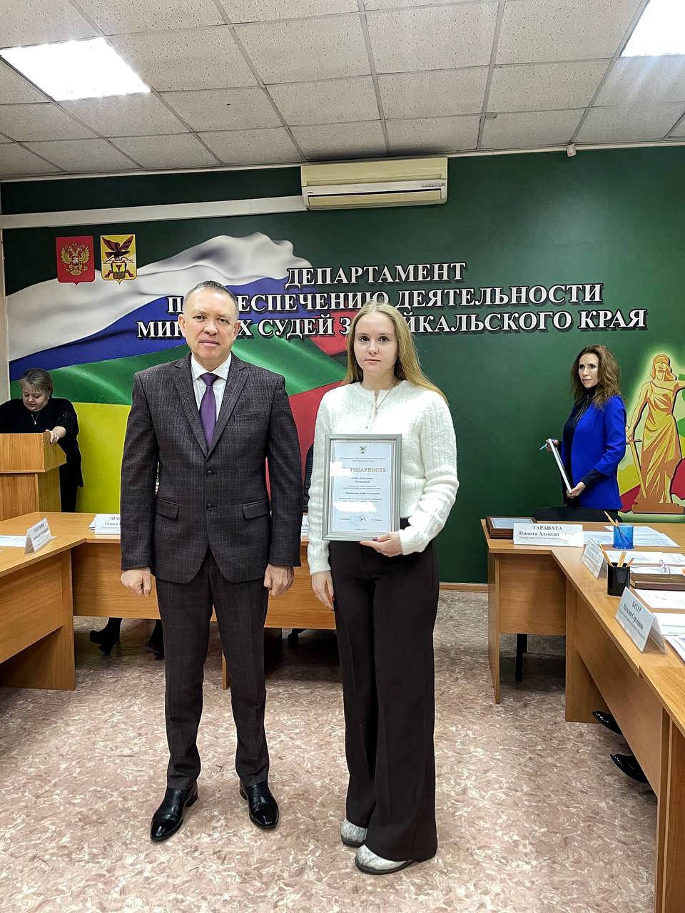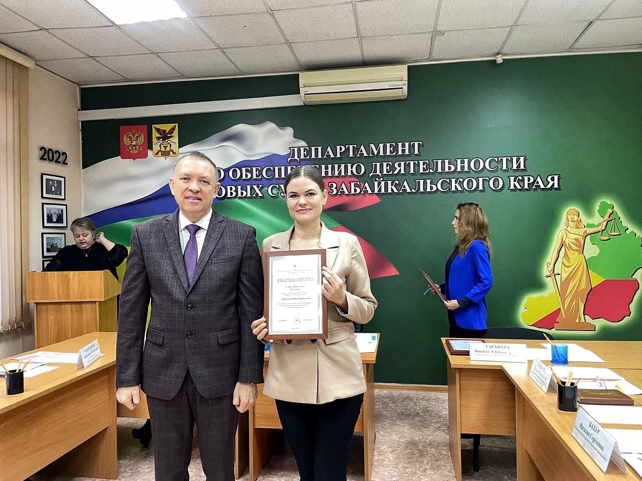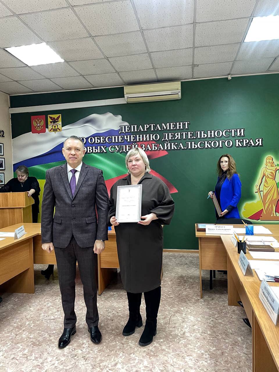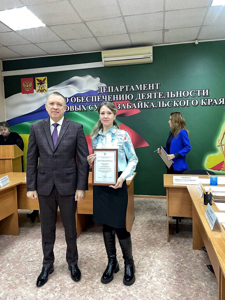 - Алене Алексеевне Черницовой- секретарю суда судебного участка № 43 Приаргунского судебного района Забайкальского края