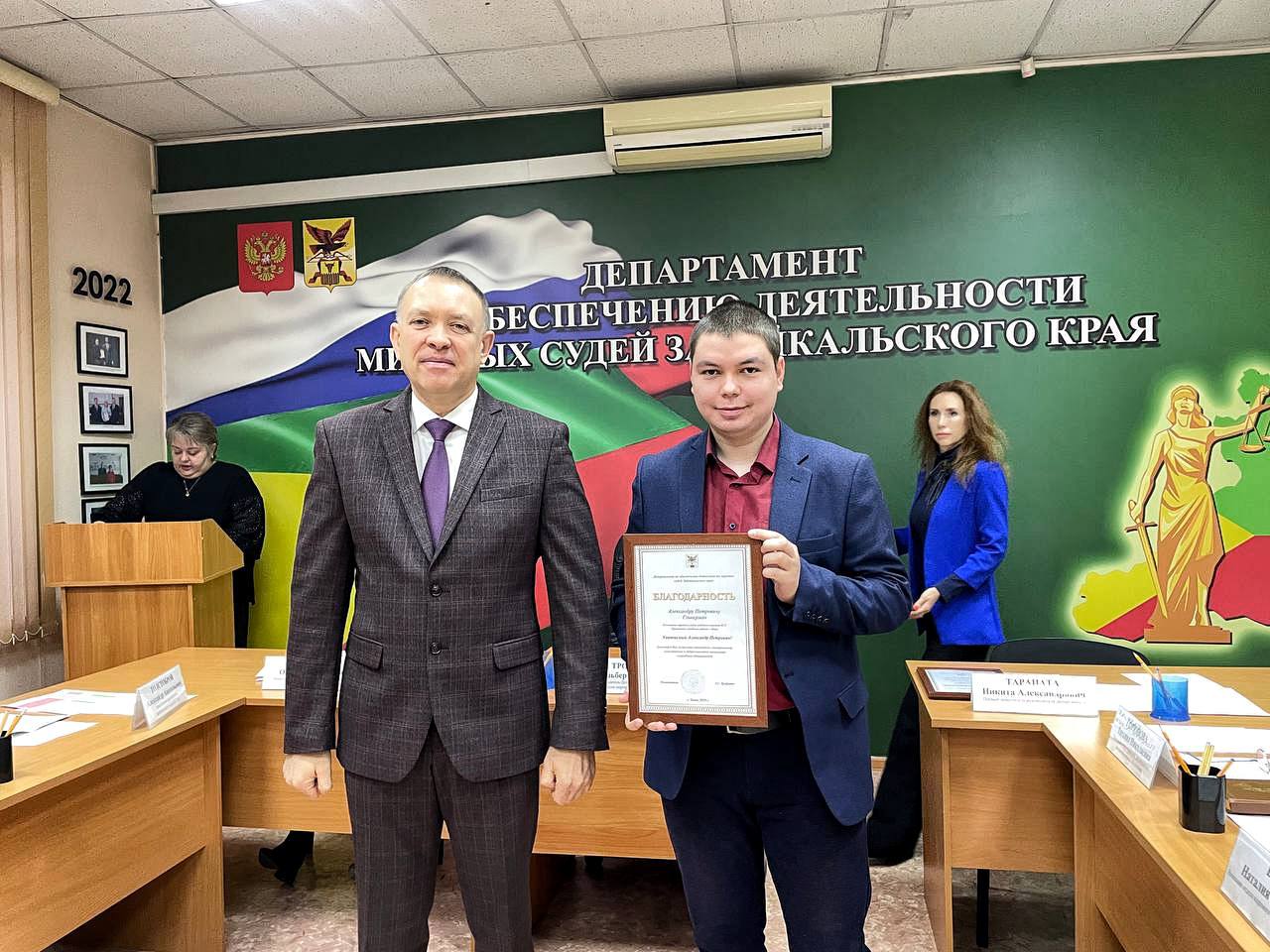 Также Альберт Сергеевич поблагодарил Никиту Сергеевича Жданова- директора ИП Жданова Ю.А и вручил благодарность за ответственное, качественное и своевременное осуществление вывоза дел с истекшим сроком хранения из архивов судебных участков г.Читы и Забайкальского края.