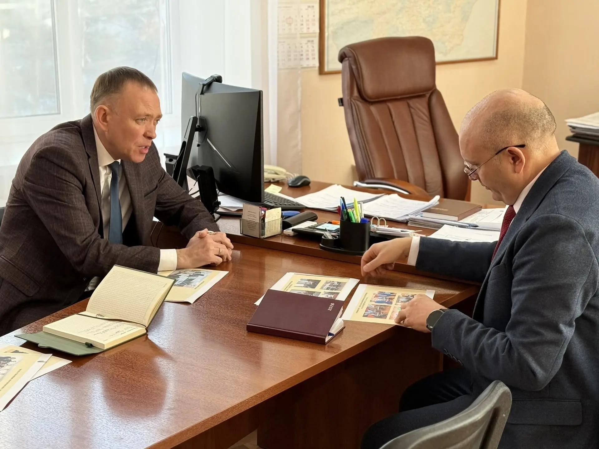 В середине рабочей недели, в атмосфере конструктивного диалога, состоялась важная встреча между Альбертом Трофимовым, руководителем Департамента мировых судей, и Евгением Ушаковым, главой Балейского муниципального округа. Цель- укрепление взаимодействия по оказанию бесплатной юридической помощи и проведение мероприятий профориентации учащихся образовательных учреждений округа.