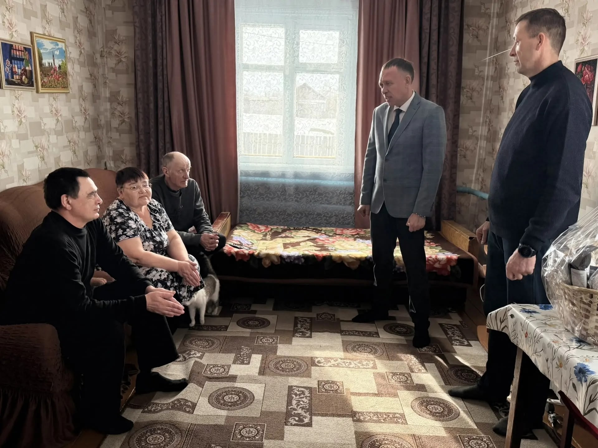 Встреча с Юрием Муратовым, многодетным отцом, награждённым медалью участника СВО и Орденом Мужества- государственной наградой Российской Федерации, прошла совместно с Николаем Давыдовым- главой сельского поселения Средне-Борзинское в Калганском округе Забайкальского края.