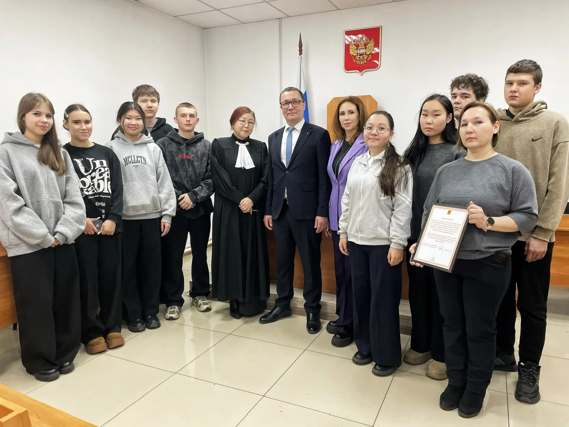 На фото: профориентационные мероприятия Департамента мировых судей для школьников 10-11 классов на судебном участке в Забайкальском муниципальном округе